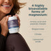 - Four highly bioavailable forms of magnesium — amino acid & peptide chelate, bisglycinate, citrate, and liposomal oxide — plus ashwagandha & probiotics